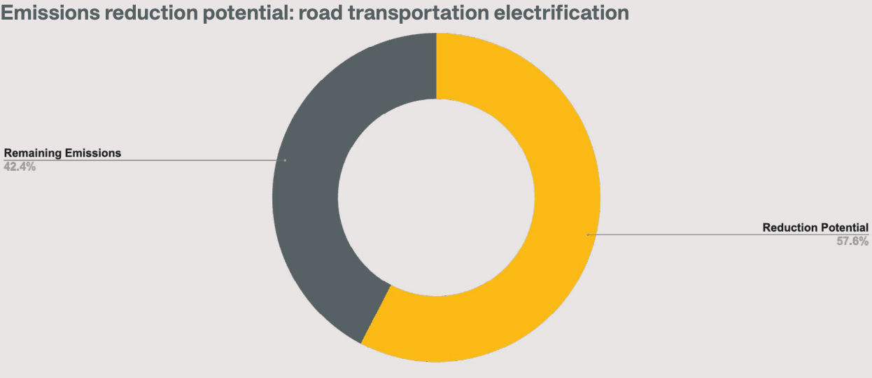 Shows the emissions reduction potential from electrifying the existing fleet of gasoline-fueled passenger cars globally, reflective of the composition of the power grid. Source: Climate TRACE data.